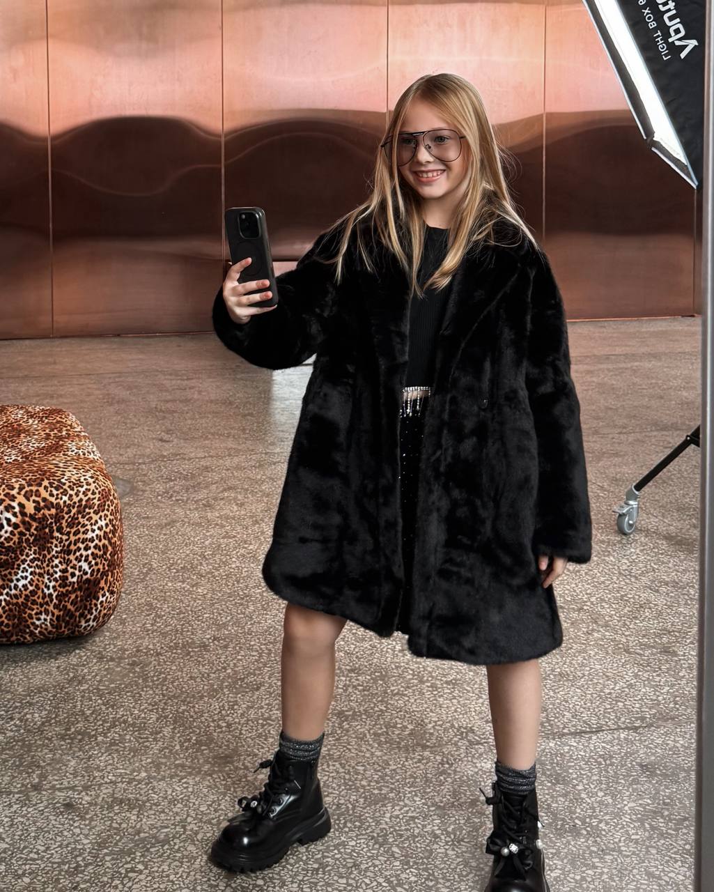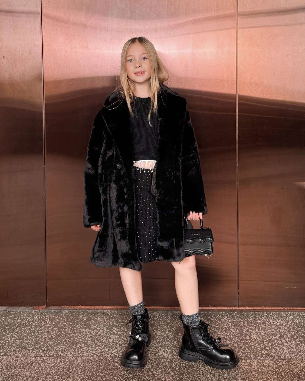 Розкішна чорна еко-шуба створена, щоб зігрівати та підкреслювати стиль в прохолодну погоду до -10*. М’який штучне хутро має глибокий благородний блиск, приємний на дотик і не відрізняється від натурального. Модель виконана в оверсайз-крої — виглядає сучасно й водночас комфортно для руху