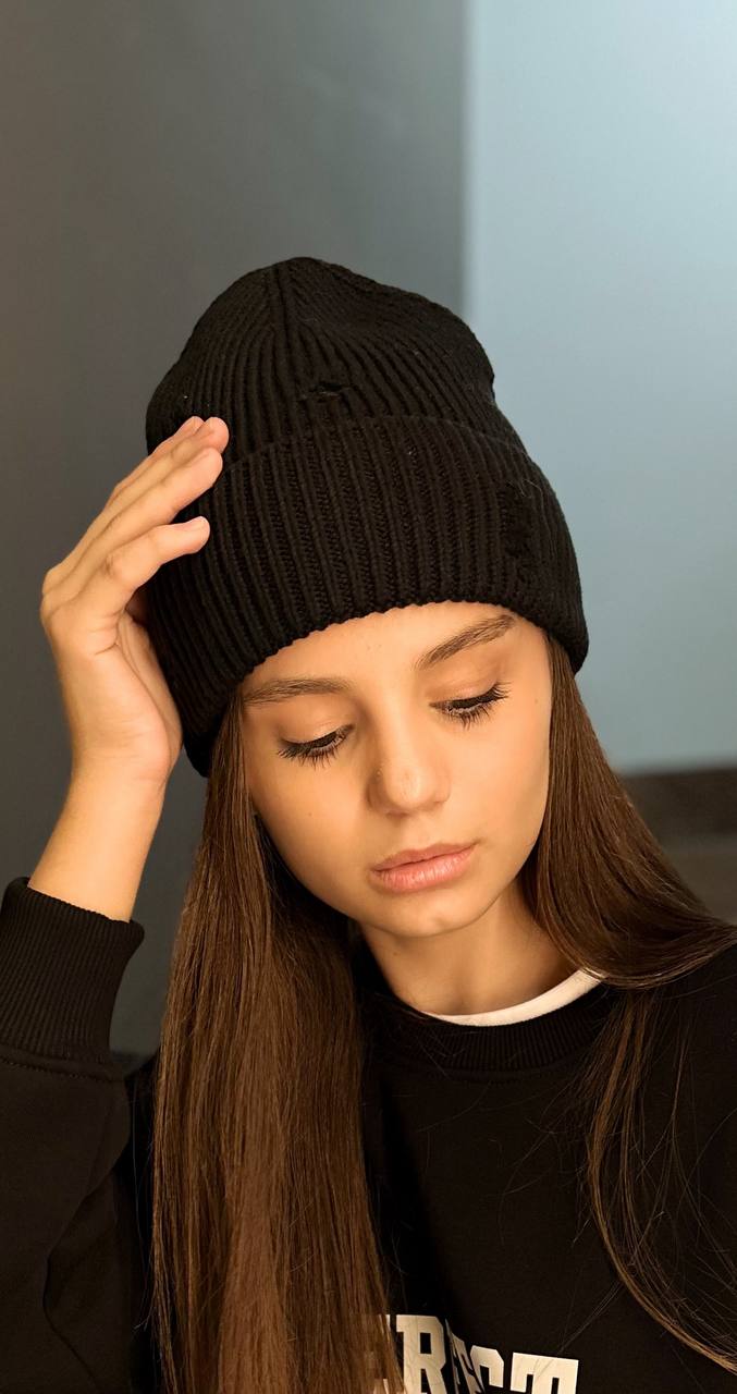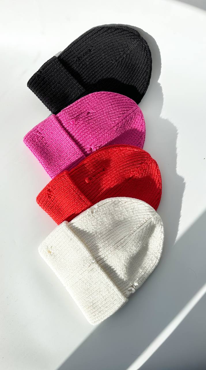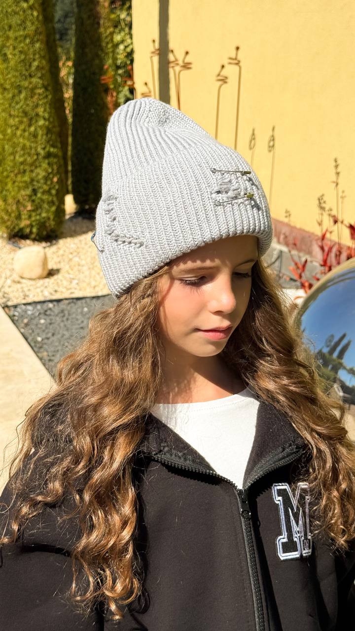 Тренд сезону - шапка з рваним декором та булавками