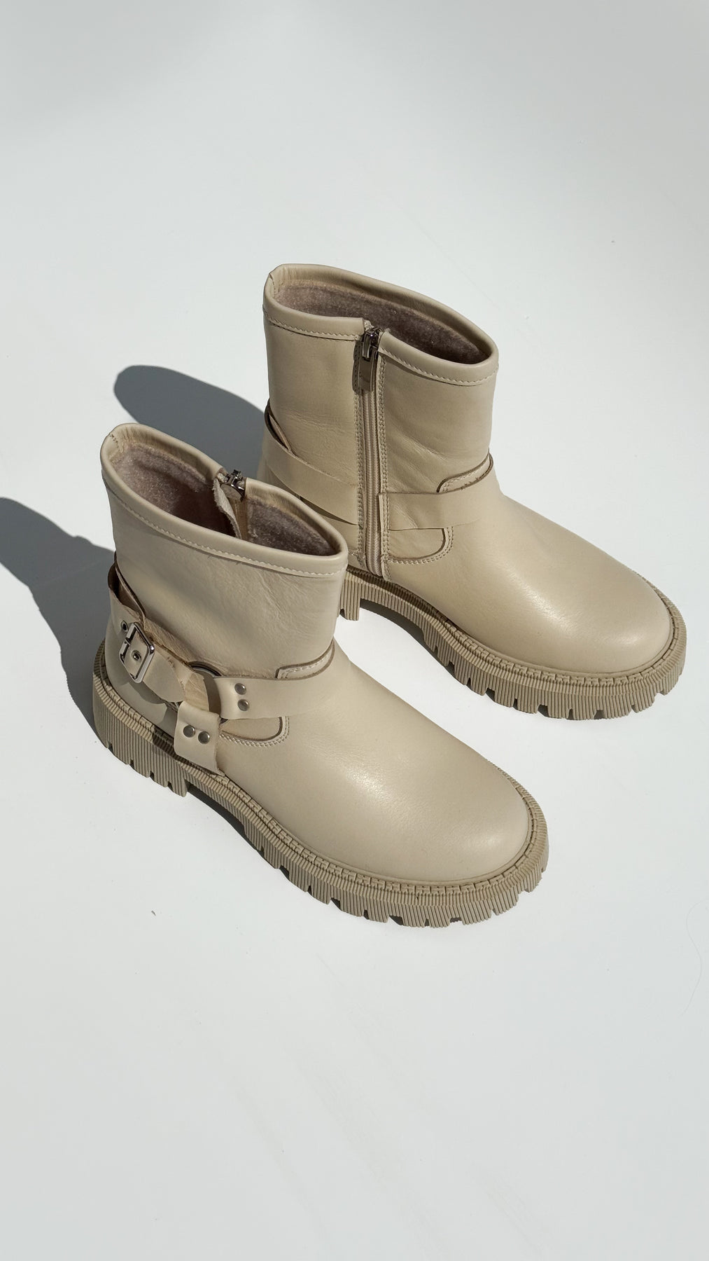 Stylish boots made of genuine leather with a thick sole. The model is insulated for temperatures down to -5°C.
