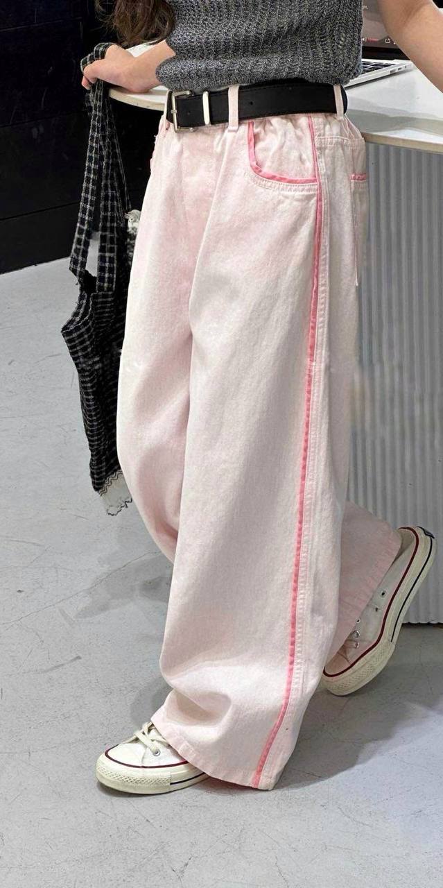 I jeans rosa con lampada sono un accento luminoso nel vostro guardaroba! Comoda vestibilità ampia e denim sottile, ideale per tutti i giorni.
