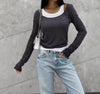 Лонгслів з тонкої бавовняної тканини, з акцентним подвійним шаром.