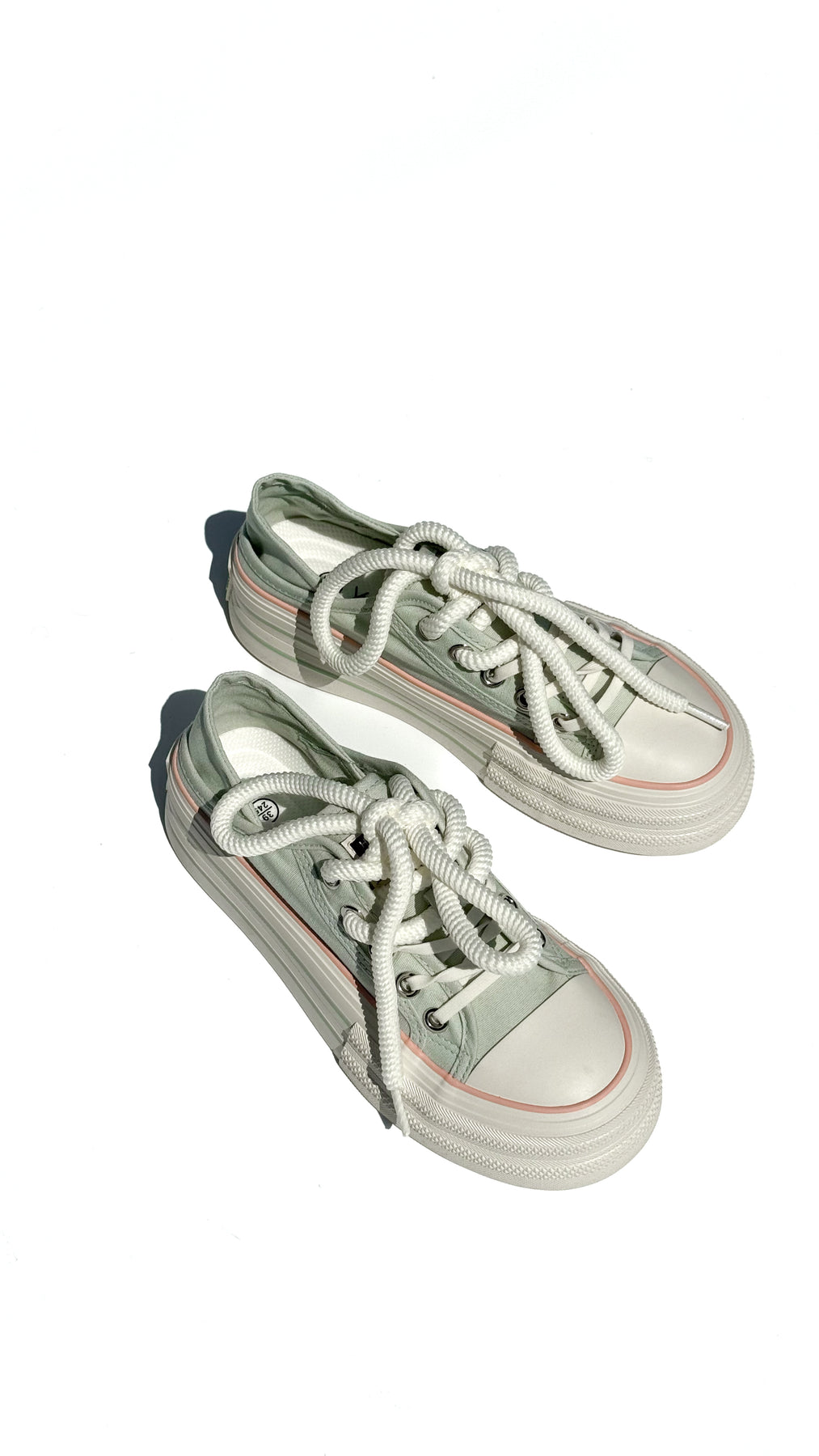 Cotton sneakers that convert into mules in one easy step. The perfect choice for summer—thin cotton, high soles, and a comfortable fit. Accessories can be purchased separately.