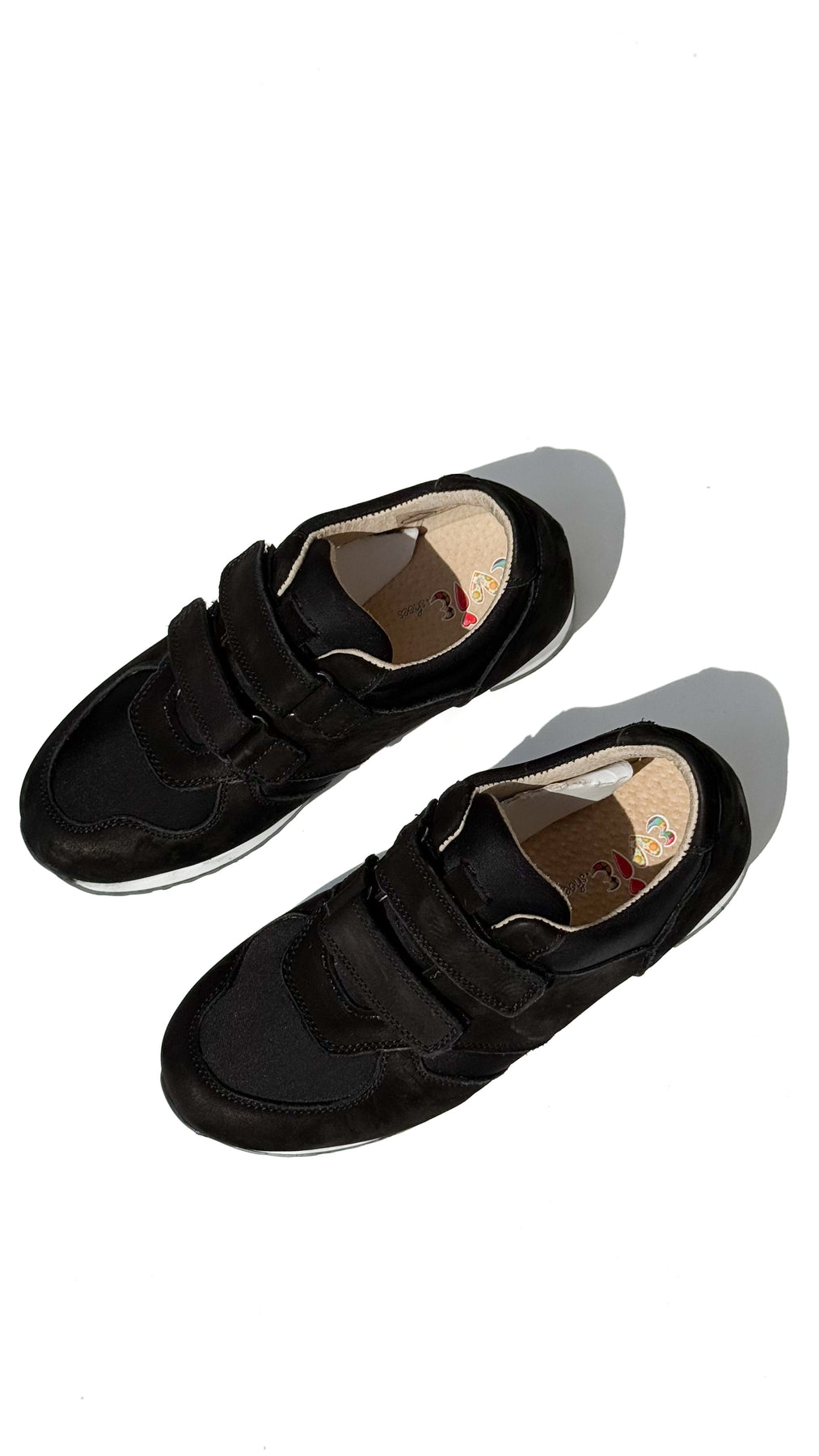Sneakers made of genuine nubuck in classic dark blue. Velcro fastening. With arch support. Unisex model.